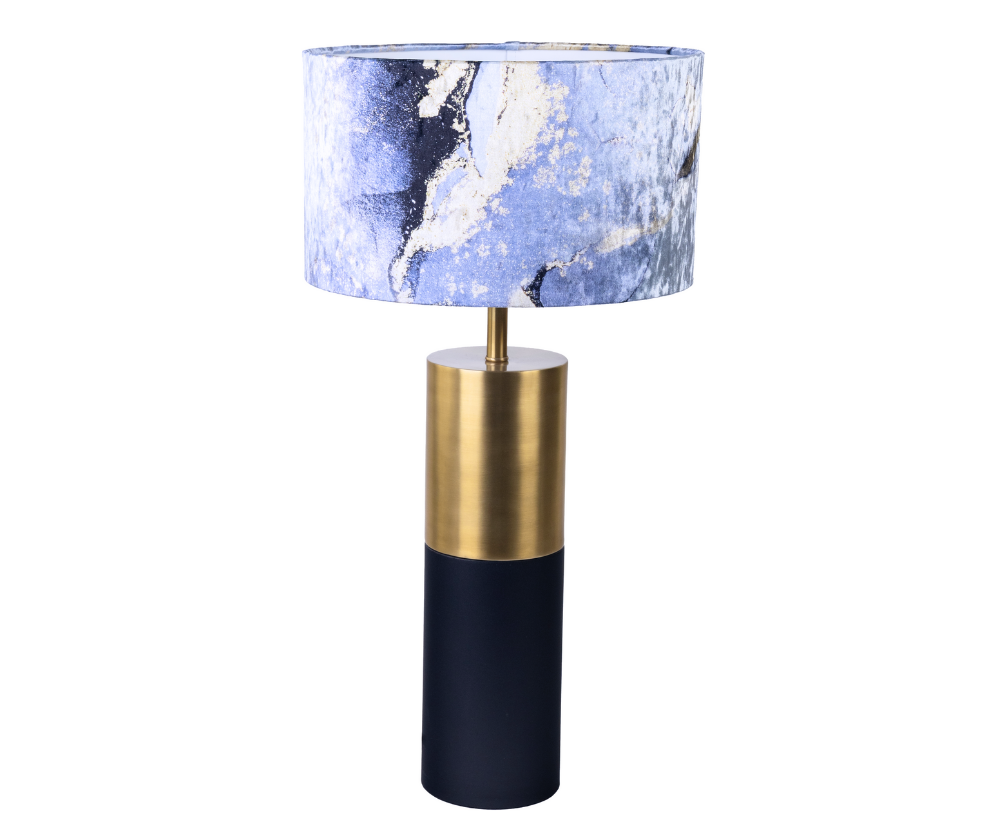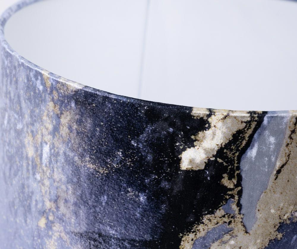 • Artystyczny abażur walec inspirowany techniką pouringu – Niebiesko-złoty abażur zachwyca malarskim wzorem przypominającym abstrakcyjne obrazy. Każdy egzemplarz jest unikatowy i niepowtarzalny.