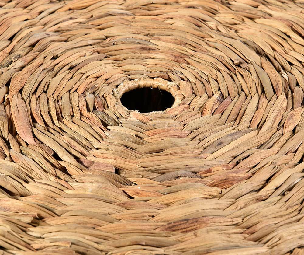 • Zaokrąglona forma o lekkiej, dekoracyjnej sylwetce – okrągły stolik z trawy morskiej o delikatnym przewężeniu w środkowej części wyróżnia się subtelną elegancją i nowoczesną lekkością. Dzięki temu stolik boho prezentuje się dekoracyjnie i nie przytłacza przestrzeni, nawet w mniejszych pomieszczeniach.