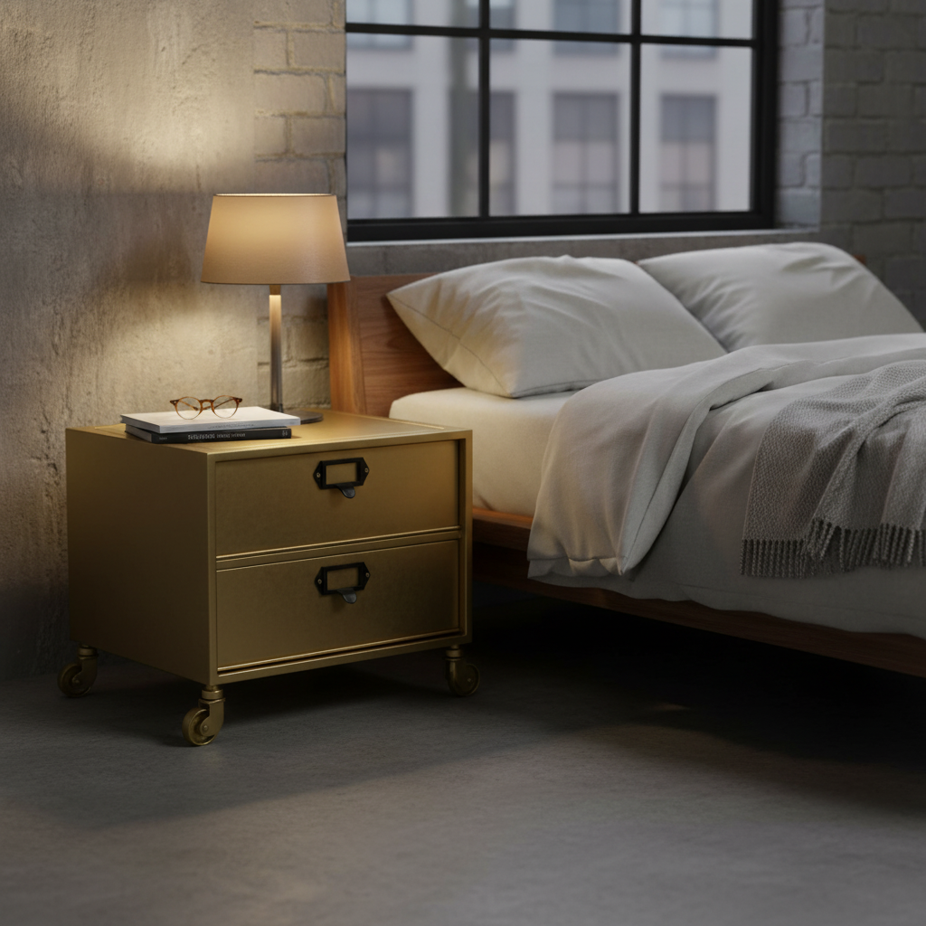 • Złota szafka metalowa o nowoczesnym charakterze – mała szafka metalowa Gold Line wyróżnia się eleganckim, złotym wykończeniem, które nadaje wnętrzu nowoczesny i lekko industrialny charakter. To stylowa szafka dekoracyjna, która doskonale wpisuje się w aranżacje loftowe, modern classic oraz nowoczesne wnętrza.