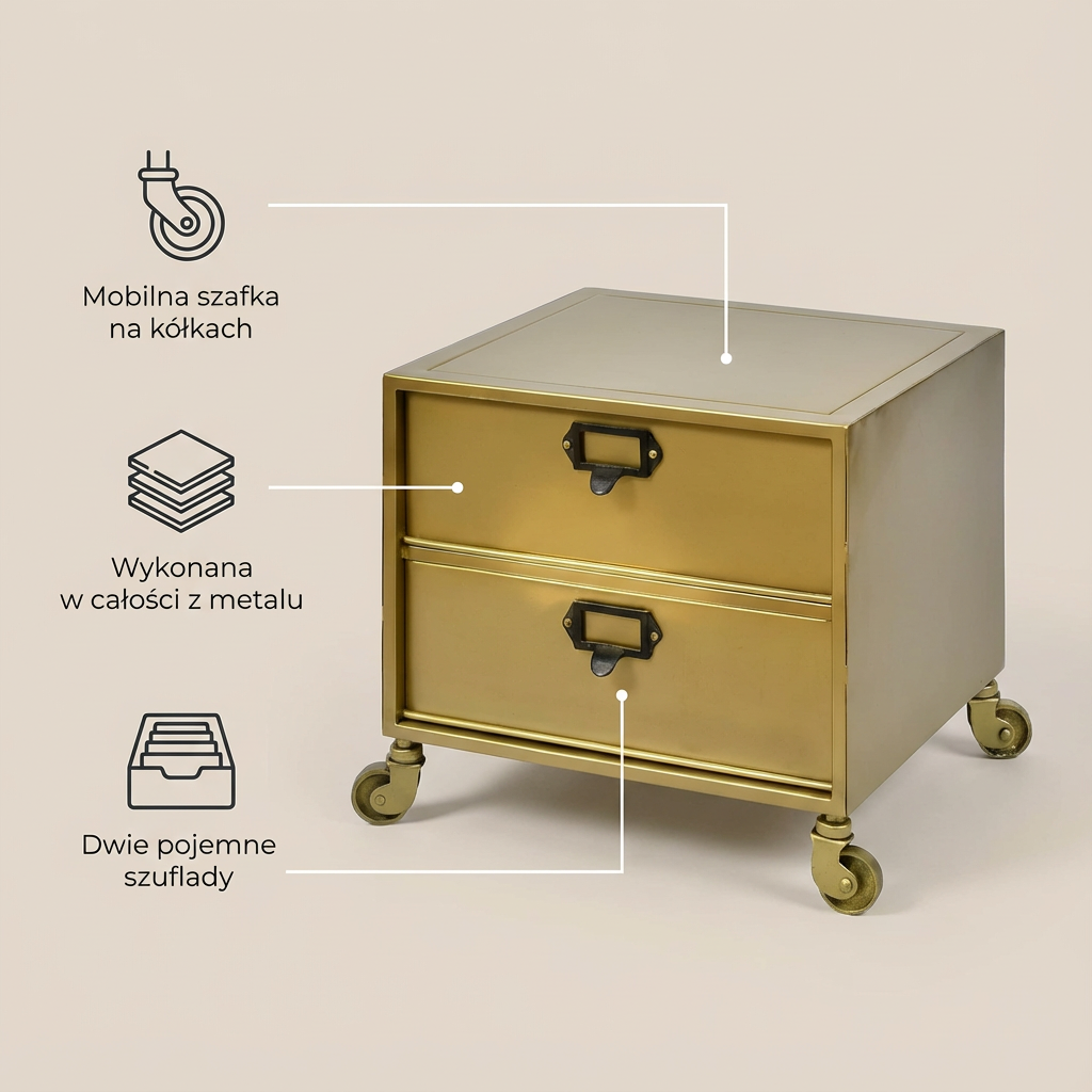Szafka metalowa Gold Line - mała szafka na kółkach w złotym kolorze