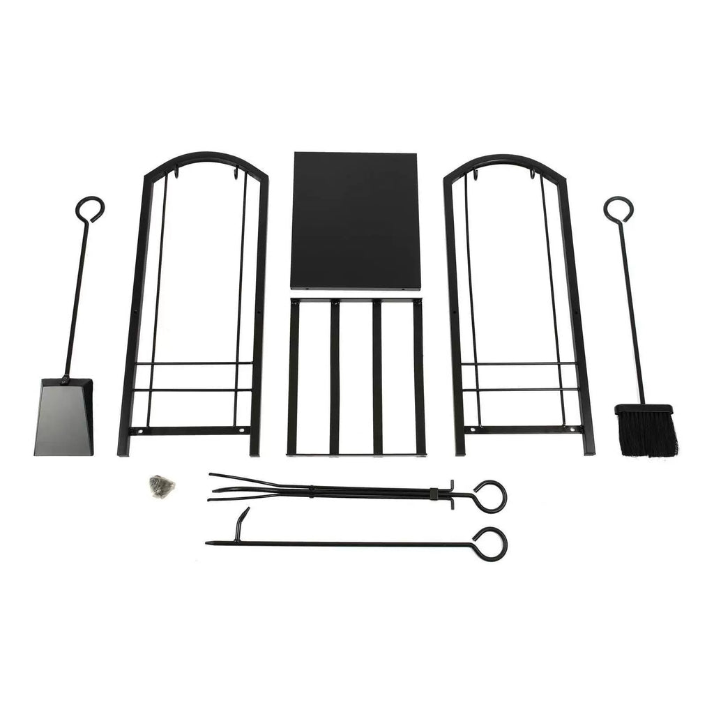 • Zestaw akcesoriów kominkowych zawsze pod ręką – W komplecie znajdują się praktyczne narzędzia kominkowe: zmiotka, szczypce, pogrzebacz oraz szufelka, które można zawiesić na bocznych haczykach stojaka. Dzięki temu wszystkie niezbędne akcesoria są uporządkowane, łatwo dostępne i estetycznie wyeksponowane, co znacząco zwiększa komfort obsługi kominka.